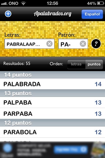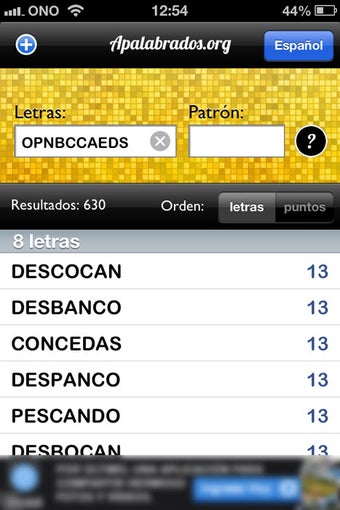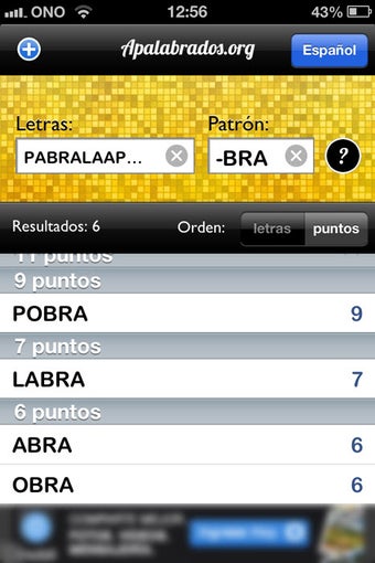 Apalabrados.org es la versión para iPhone/iPad de la página web del mismo nombre. Su cometido es mostrarte las palabras posibles a partir de unas letras que tú escribas.